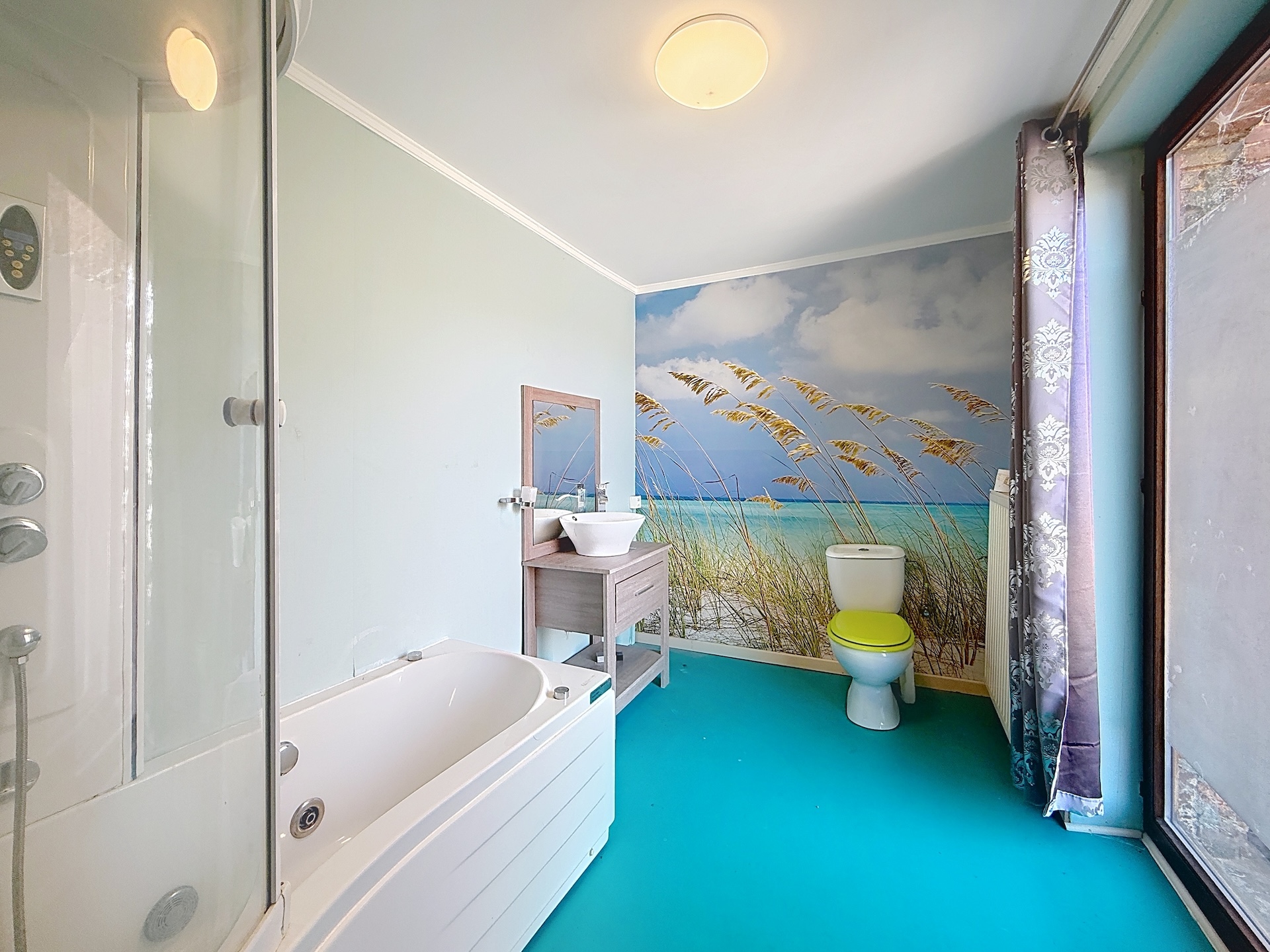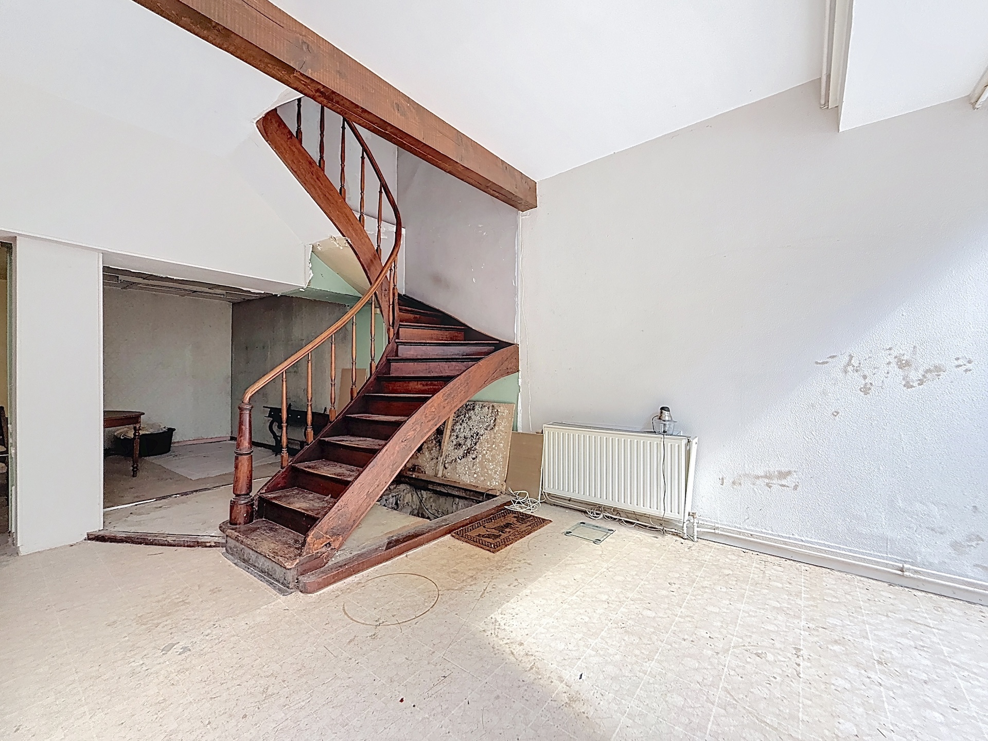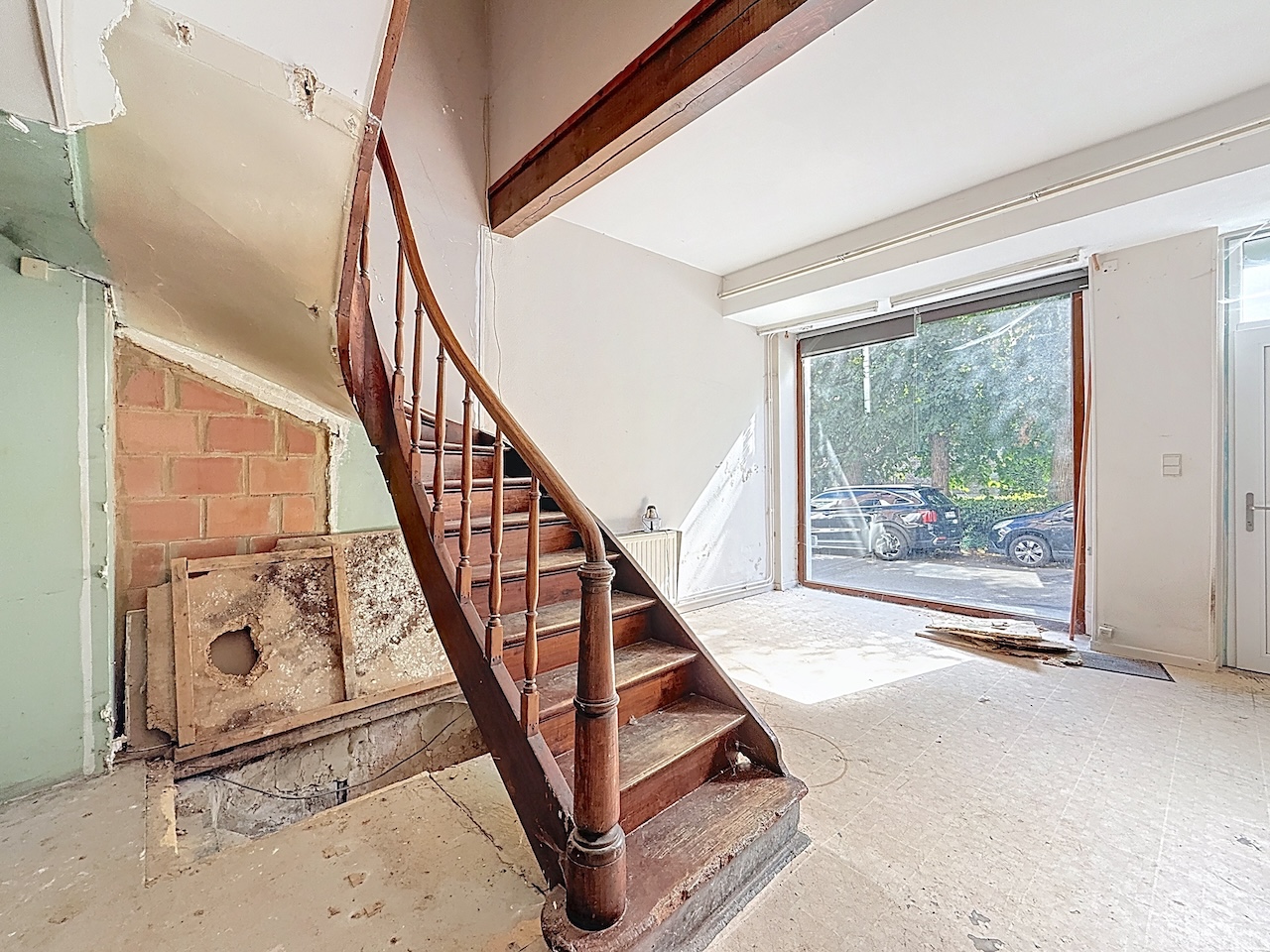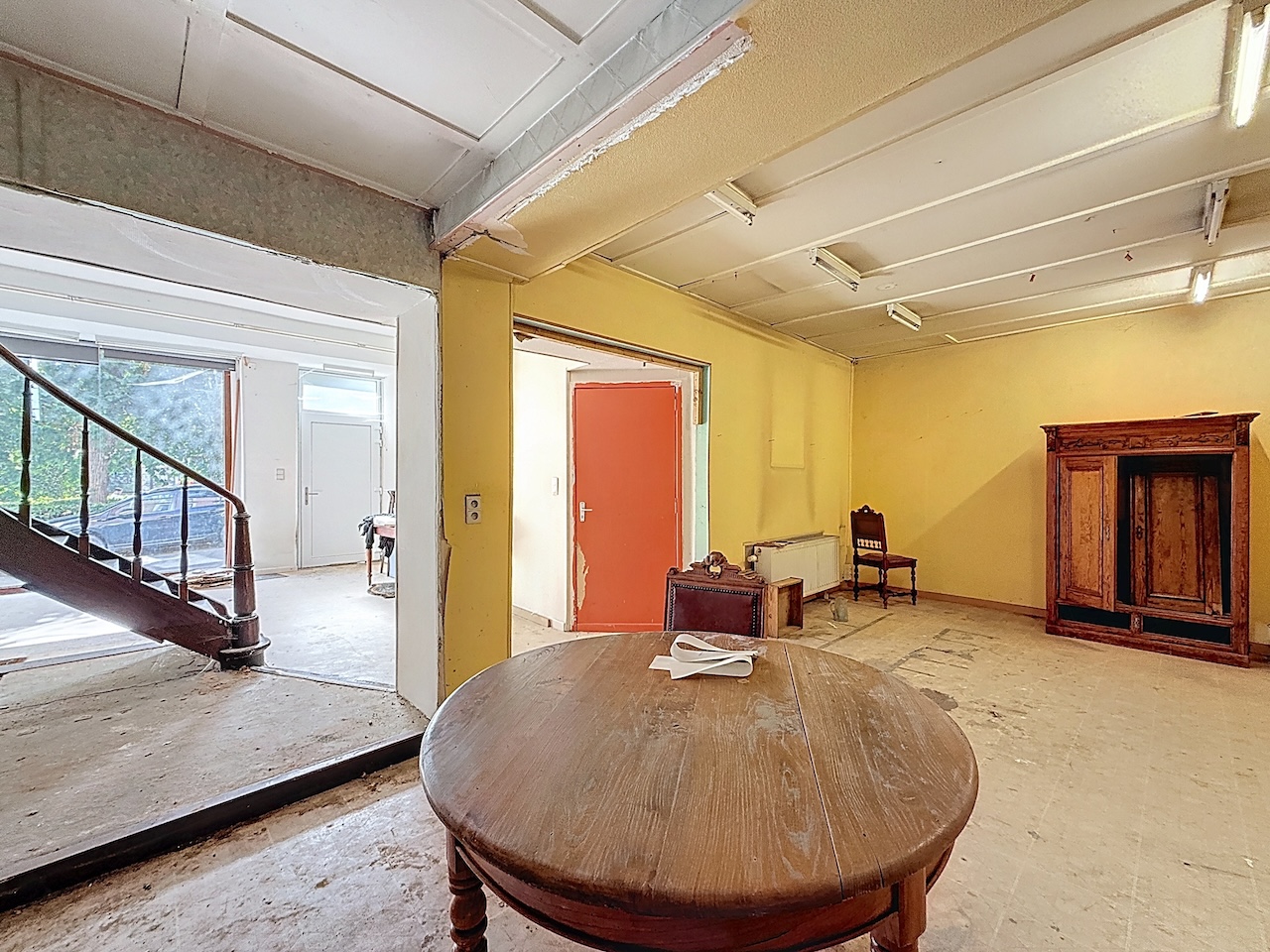 Le rez-de-chaussée offre un vaste espace d’exposition ou de bureau, parfait pour une profession libérale, ainsi qu’un garage équipé d’une fosse.