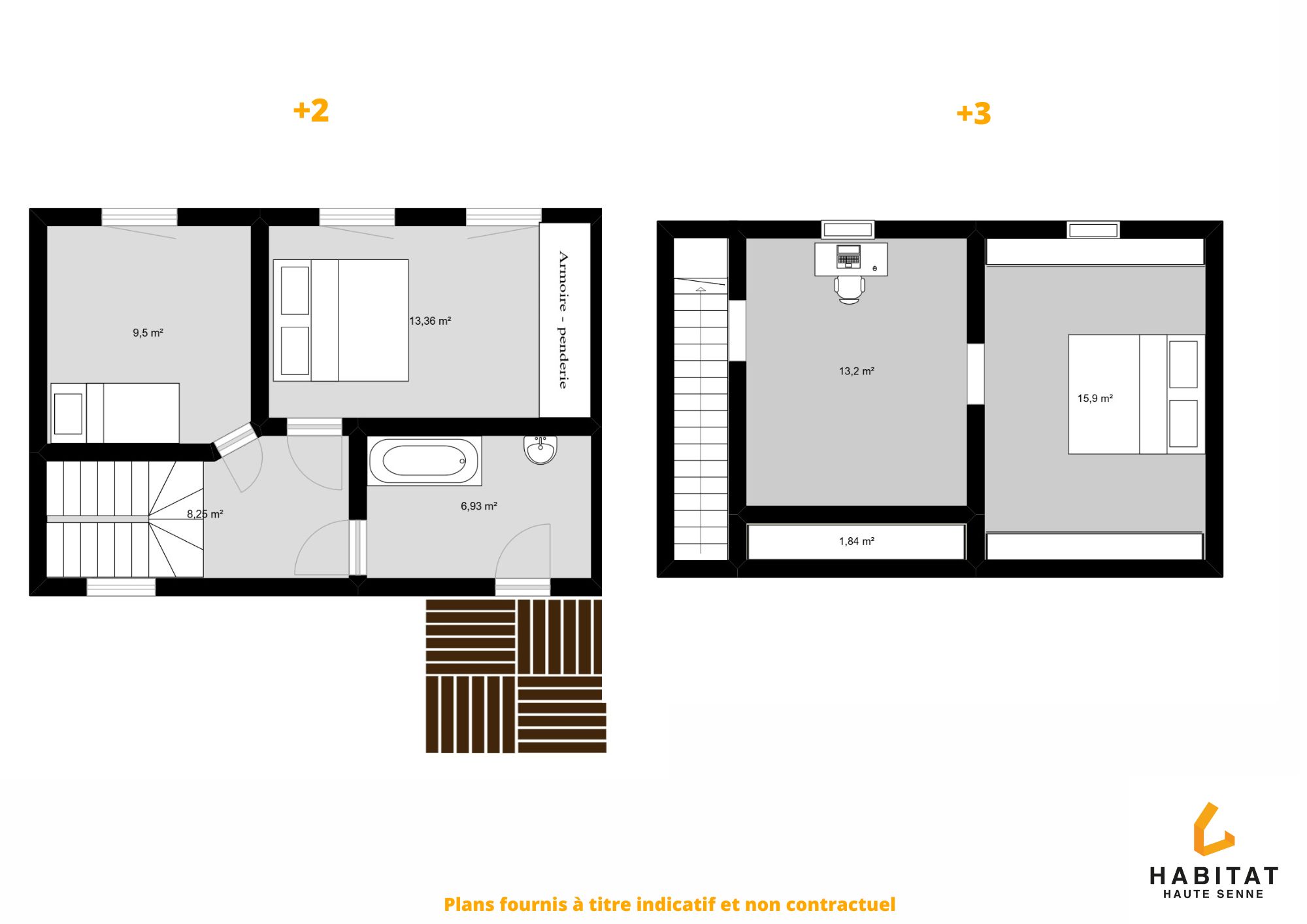Enfin, le dernier étage propose deux chambres en enfilade, idéales pour accueillir une famille ou aménager des espaces polyvalents.