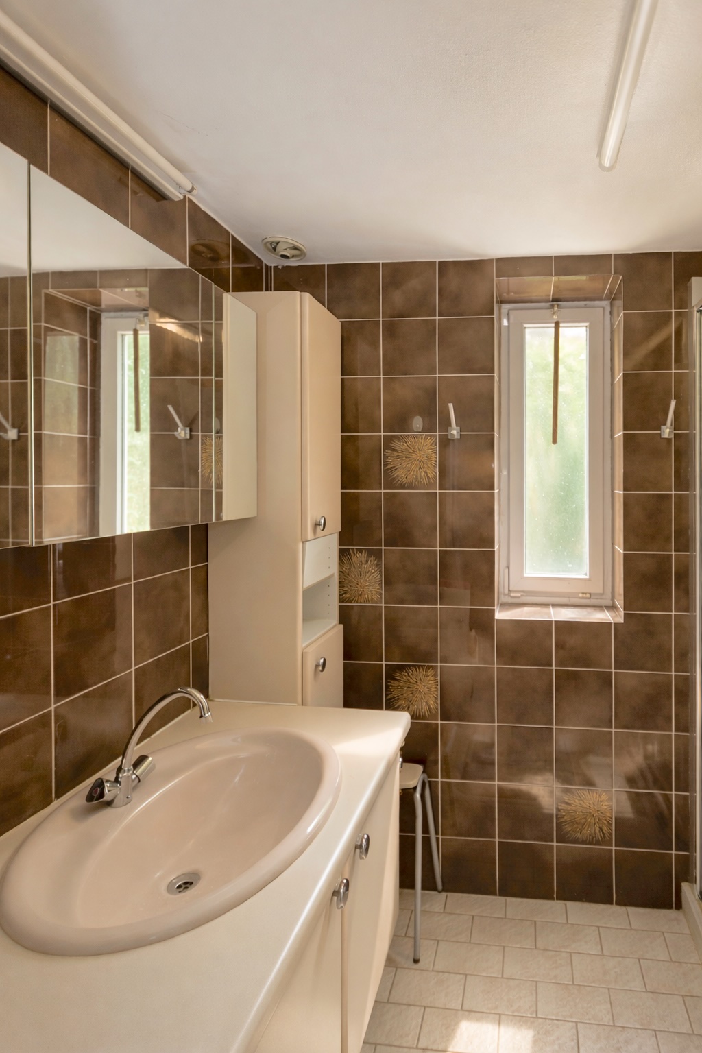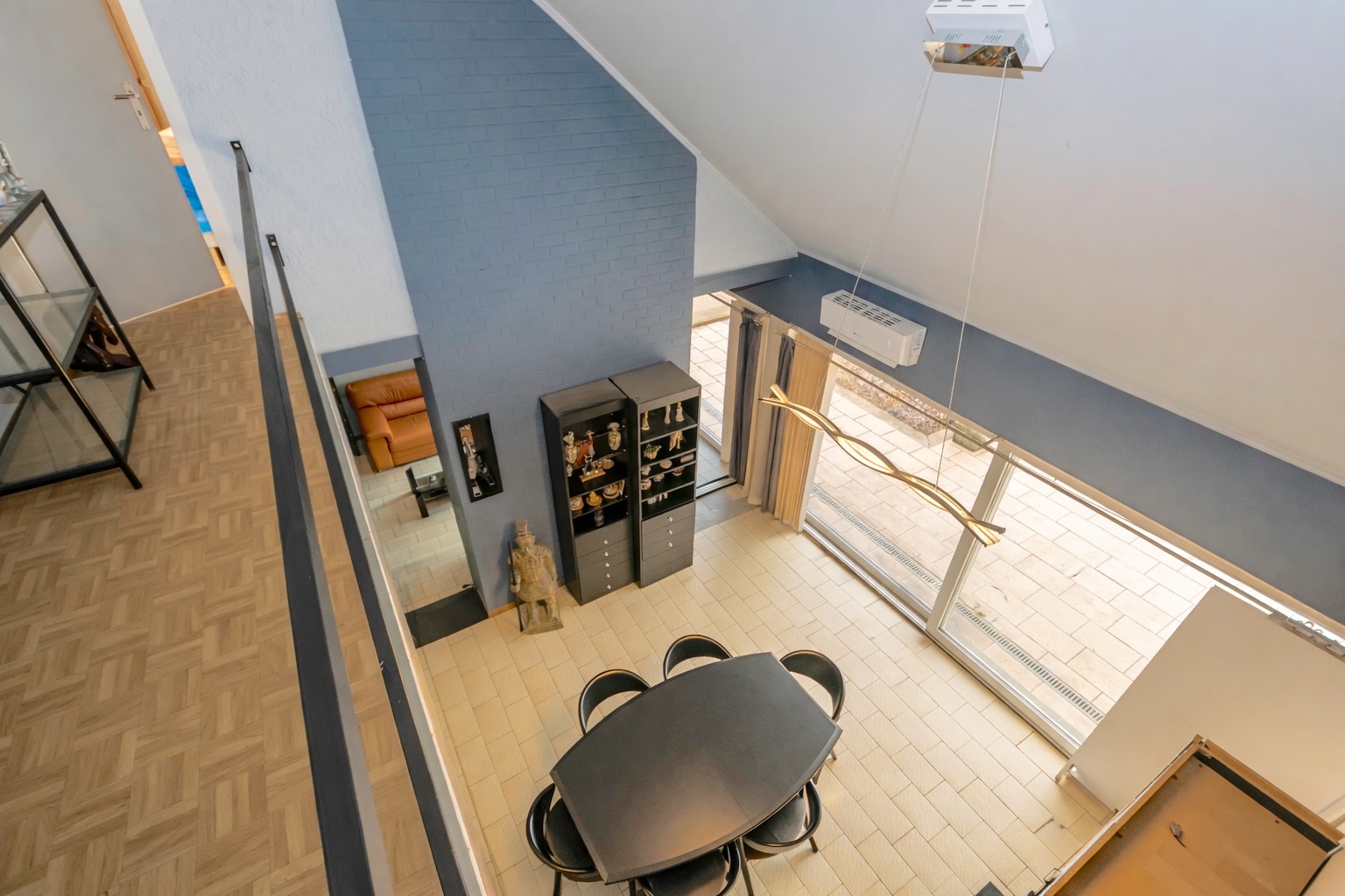 Un second hall avec vestiaire mène vers un WC séparé, un lumineux séjour en demi-niveau au cachet architectural, une cuisine fonctionnelle, un débarras ainsi qu’une salle de bains.