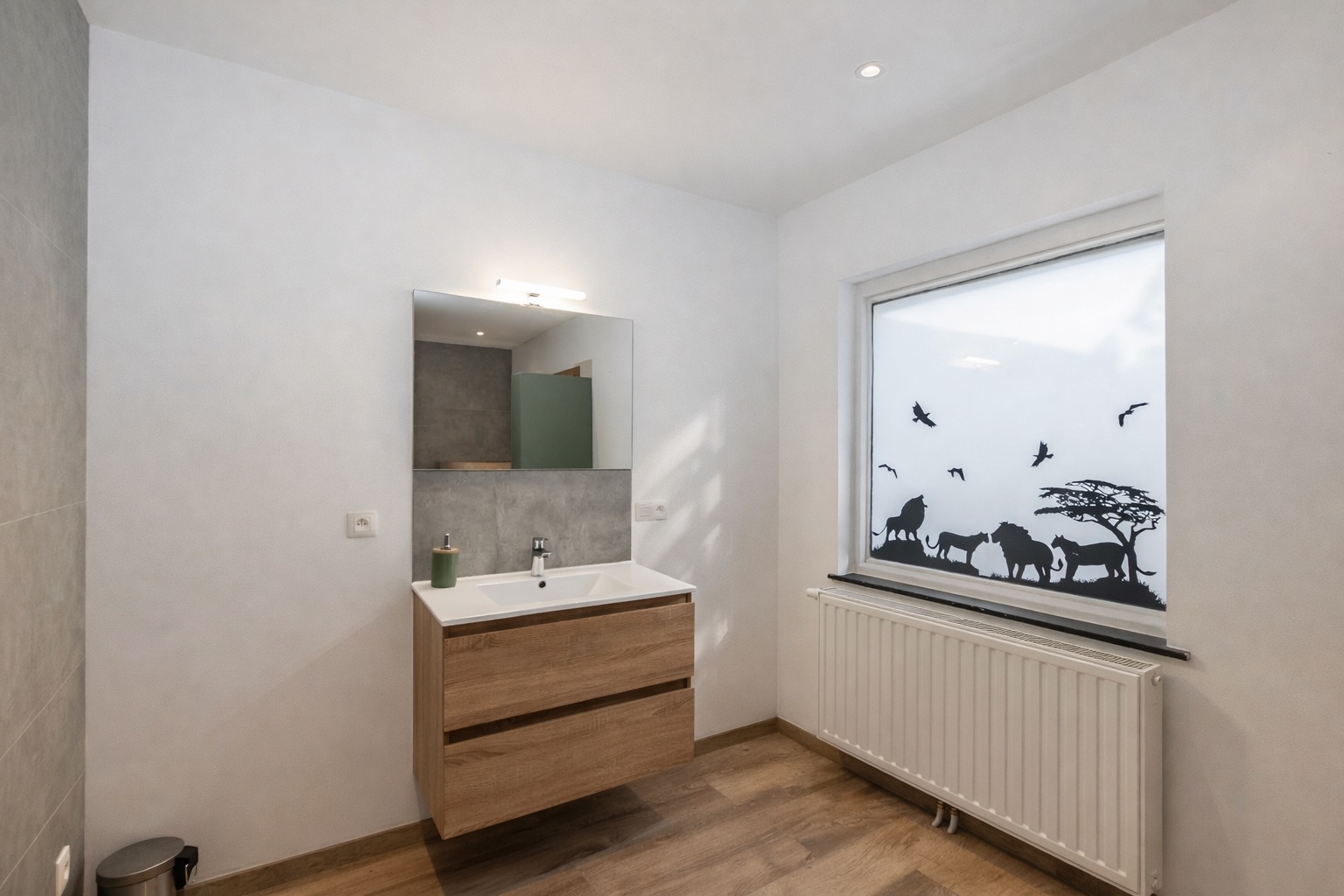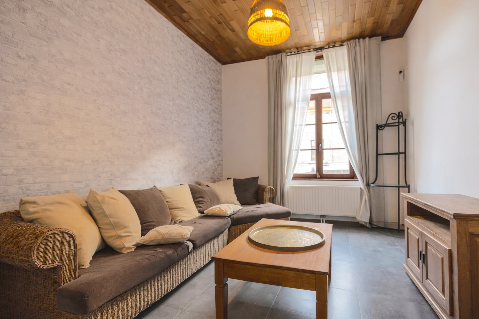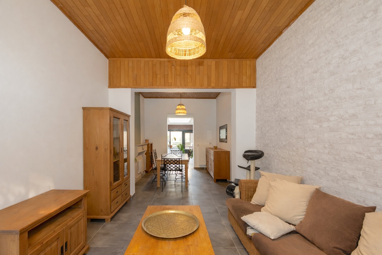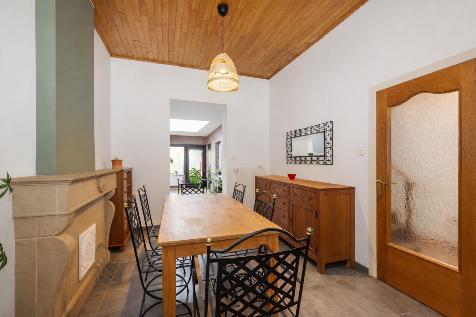 Le rez-de-chaussée se compose d’un spacieux hall d’entrée, d’un séjour chaleureux, d’une cuisine fonctionnelle récente et équipée, d’une spacieuse salle de douches avec WC, d’un petit patio avec espace de rangement ainsi que d’une buanderie/chaufferie.