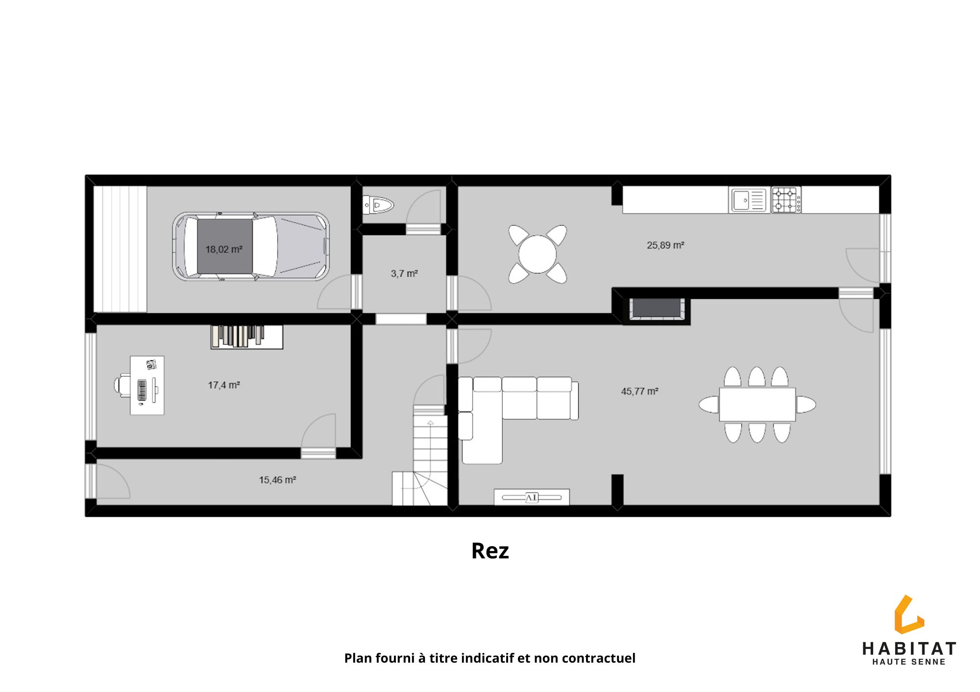 Dès l’entrée, vous découvrirez un hall d’entrée avec coin vestiaire et WC séparé. Le rez-de-chaussée offre également un bureau, parfaitement adapté à l’exercice d’une profession libérale, un vaste séjour agrémenté d’un feu ouvert, une grande cuisine équipée avec coin dinatoire, ainsi qu’un garage équipé d’une porte à commande électrique.